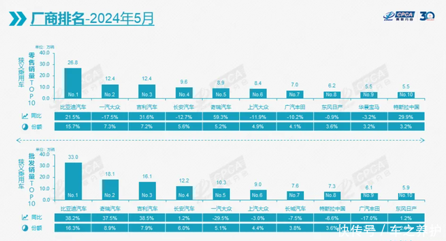 正如前文所讲,5月份,自主品牌新动力车浸透率高达59.8%。比亚迪说明尤为凸起,5月份,比亚迪的零卖销量达到了26.8万辆,稳居销量榜首,除了比亚迪除外,吉祥汽车、长安汽车和奇瑞汽车等自主品牌也在5月份获得了不俗的销量收货,其中吉祥的销量也罢了了同比增长,增幅达到了31.6%。
