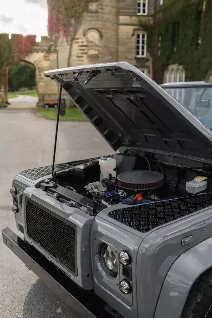 阅兵的使命最初是对车身和底盘进行全面耕种,一共耗尽了1000小时。然后外不雅秉承了迈凯伦同款的Nardo Grey珍珠灰车漆,彰显车主是迈凯伦车手的身份。轮毂搭配的是玄色18英寸铝合金轮毂,搭配BF Goodrich越野轮胎。轮眉被进一步加宽,以容纳18寸大轮。而为了更好的照明恶果,车灯光源被替换成LED。