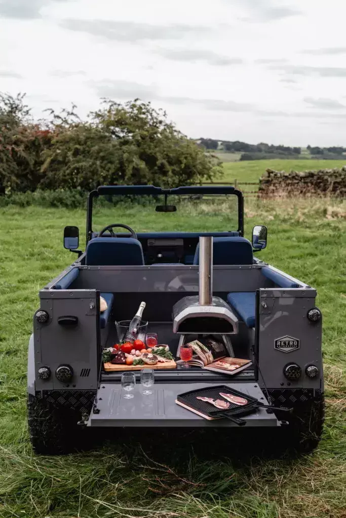 Retro Automotive于2018年建树,故意字据不错喜好定制改装车型,年产量越15辆车,定制周期约6个月。厚爱东谈主Ben Davies示意,受英国闻明F1赛车手兰多·诺里斯(Lando Norris)请托,对这辆经典的老卫士进行改装。字据车主个东谈主喜好,对车顶进行拔除,况且加入便携式披萨烤箱,显著这是度假时所使用的座驾,这位车手真会享受。