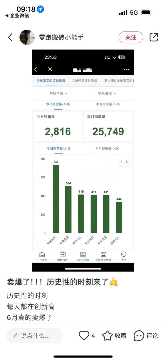 字据官方发布的数据,零跑汽车6月拜托量首破2万台,公布的具体数据是20116台,成效置身2万台俱乐部,创历史新高,同比增长52.3%。不外,从小红书ID“零跑搬砖小高手”发布的信息来看,零跑6月份锁单量为25749台,比官方公布的数据要多不少。其单日锁单量能达到2816台,比部分新能源车企的单月总销量齐高,火爆进程不言而谕。