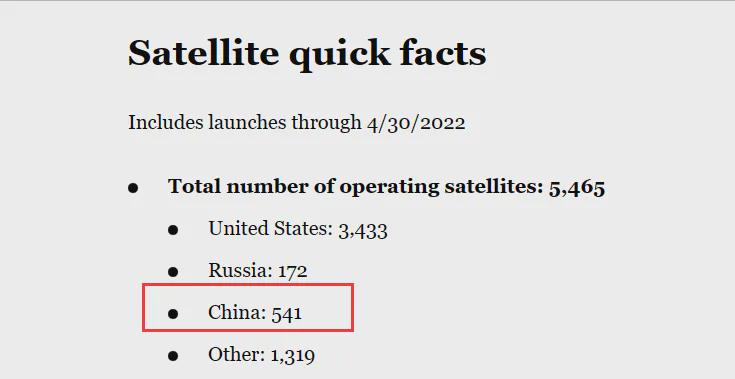 图:UCS卫星数据库的数据暴露,到2022年5月,中国的运行卫星数目为541颗,已位列全球第二。
