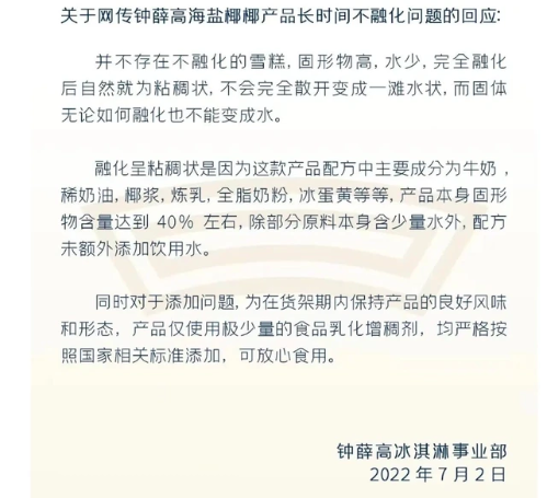 但既然糜费者问了,企业当然有答疑解惑的拖累,钟薛高随后从物理学、化学(配方)角度进行了答复。