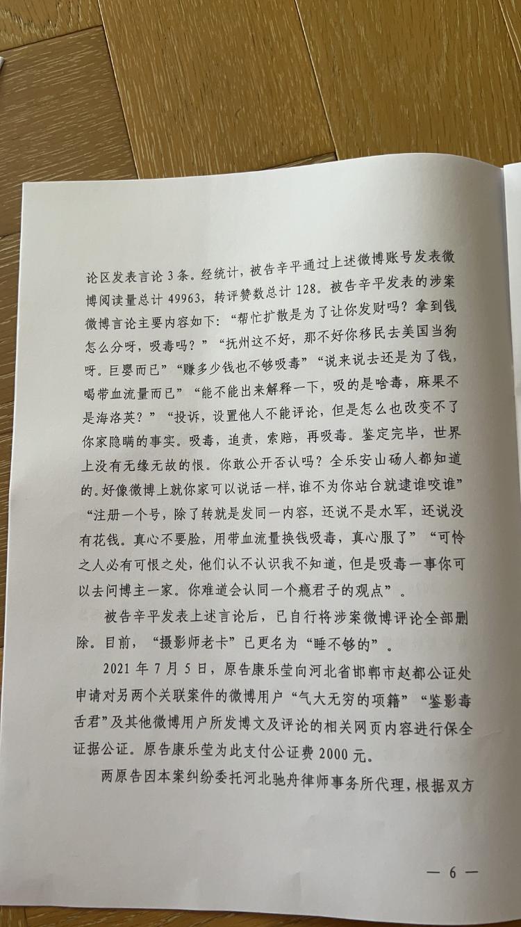 被告辛平发表了“帮衬扩散是为了让你发家吗?拿到钱如何分呀,吸毒吗?”“赚些许钱也不够吸毒”“说来说去还是为了钱,喝带血流量良友”“能不行出来诠释注解一下,吸的是啥毒,麻果不是海洛英?”等涉案言论。辛平发表上述言论后,已自即将涉案微博指摘一王人删除,并将账号名“照相师老卡”改名为“睡不够的”。