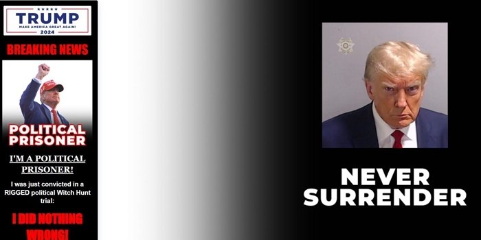 特朗普竞选官网坐窝修改主页,把特朗普称为遭到政事谋害的“政事犯”,敕令撑持者捐钱以打败“骗子”拜登。主页还放出特朗普在法庭报说念时拍的“大头照”,图下配文:毫不恪守。