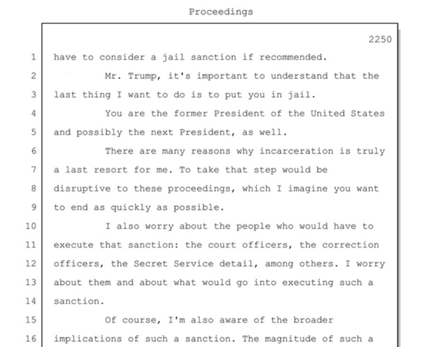 “封口费”案庭审中,默坎曾因特朗普违抗禁言令对其现实罚金。5月6日在庭上布告对特朗普的罚金时,默坎直言特朗普是好意思国前总统,也可能是曩昔的好意思国总统,“我最不肯意作念的即是把你送入监狱。”