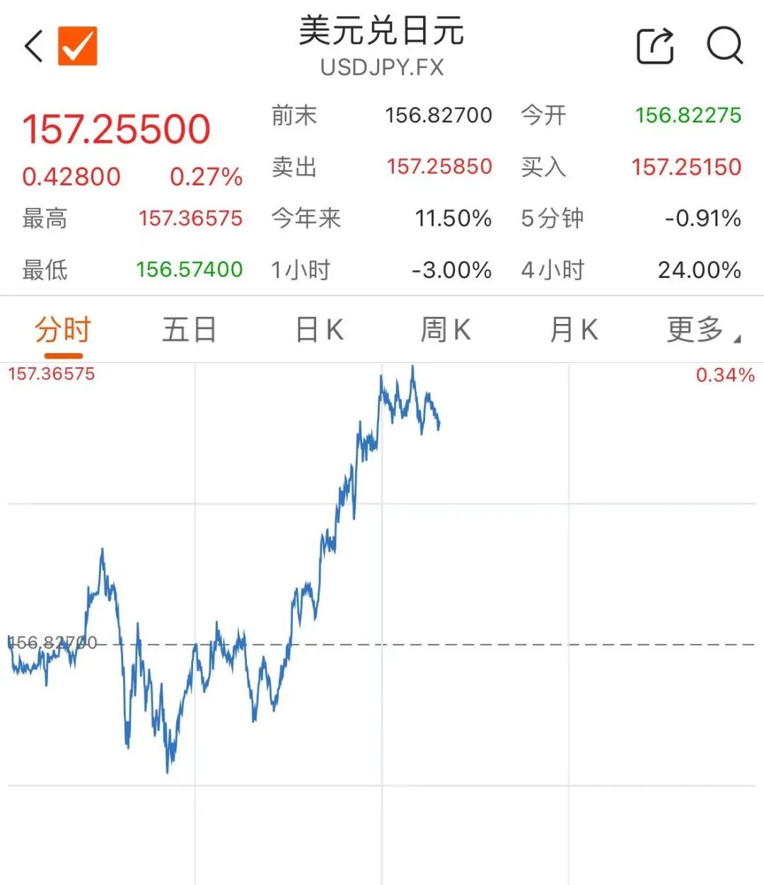 5月31日,日元抓续承压,日元对好意思元触动走低。抑遏18时40分,日元对好意思元盘中最低涉及157.36575。