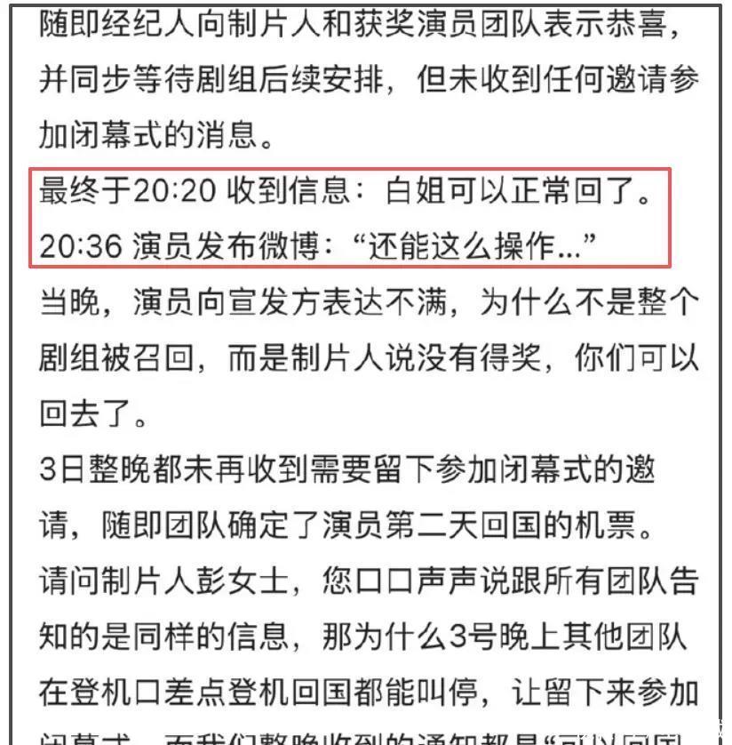 站在白百何的角度,她认为我方没得奖是有黑幕,我方被剧组平稳,被不尊重。