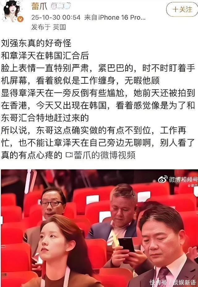 三、婚变外传里的“清醒” 10月底的APEC峰会,曾让章泽天堕入“婚变外传”。相片里她走在前边,刘强东跟在背面,两东谈主隔着半臂距离。