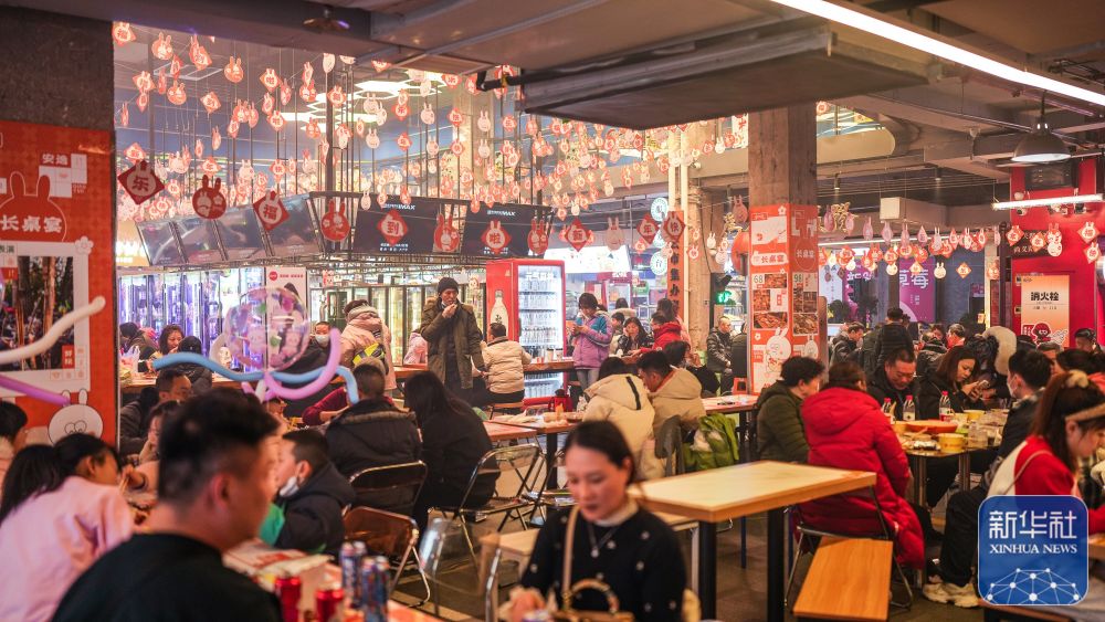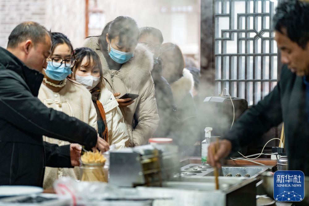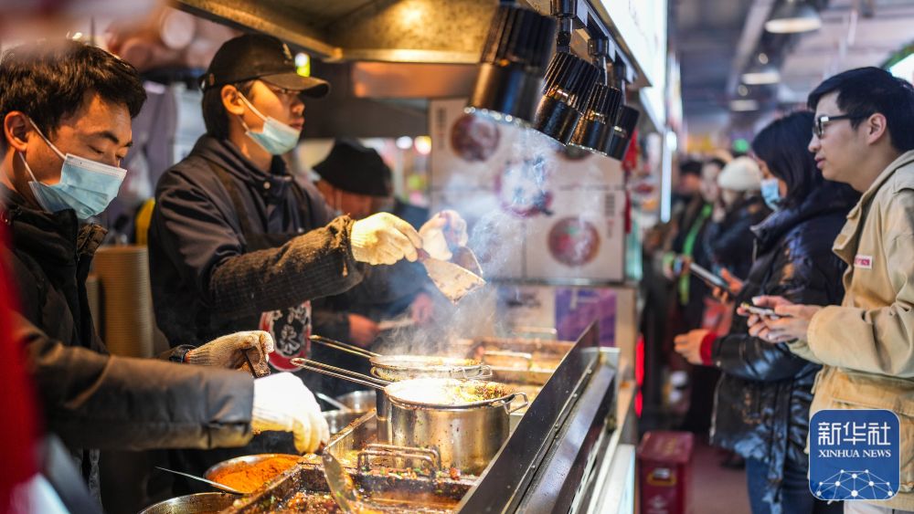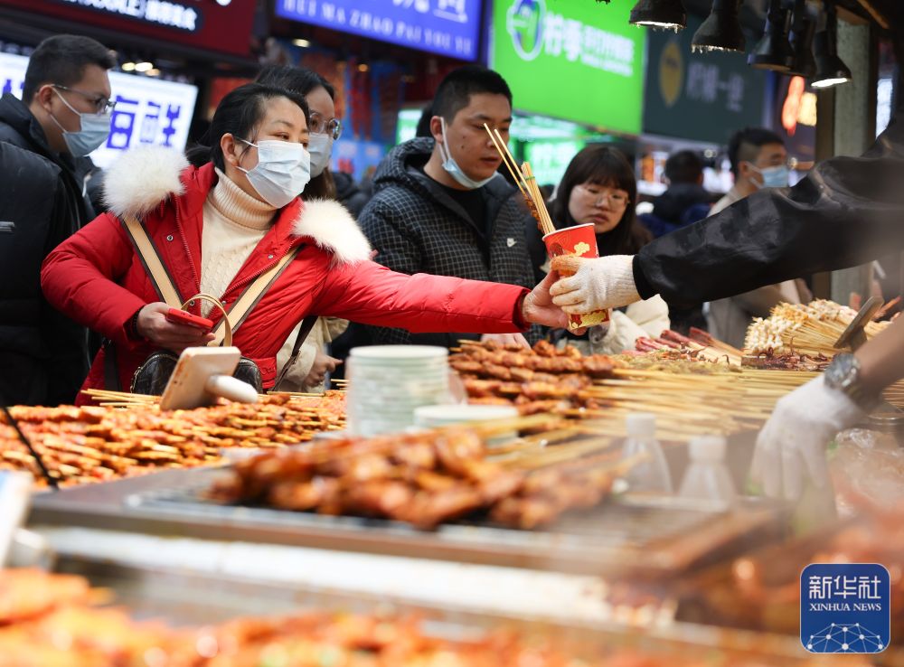 ↑破钞者在贵州省贵阳市南明区“青云市集”购买特质好意思食(1月23日摄)。新华社记者 陶亮 摄