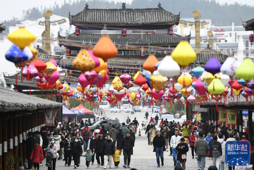 ↑1月26日,东说念主们在贵州省黄平县旧州古镇游玩。新华社发(王超 摄)