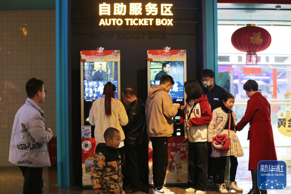 ↑1月26日,东说念主们在甘肃省定西市万达广场影城内购票。新华社发(王克贤 摄)