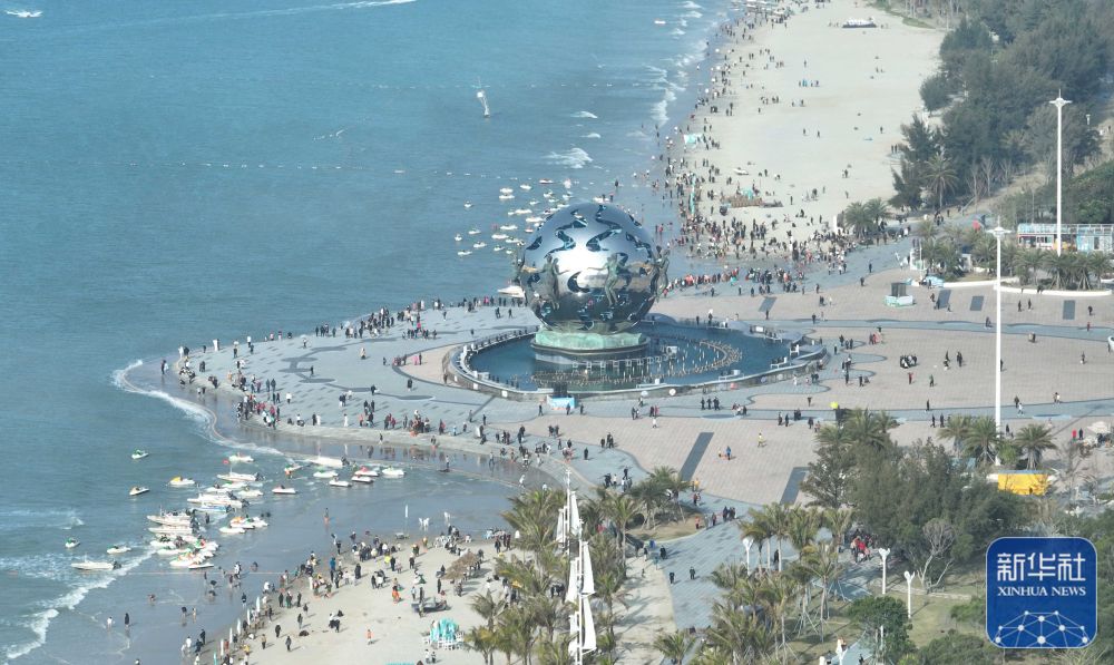 ↑1月26日,旅客在广西北海十里银滩景区游玩(无东说念主机像片)。新华社发(李君光 摄)