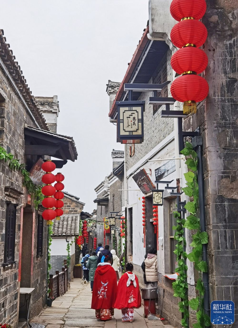 ↑1月23日,旅客在深圳旅游景区大鹏所城游玩。新华社记者 毛想倩 摄