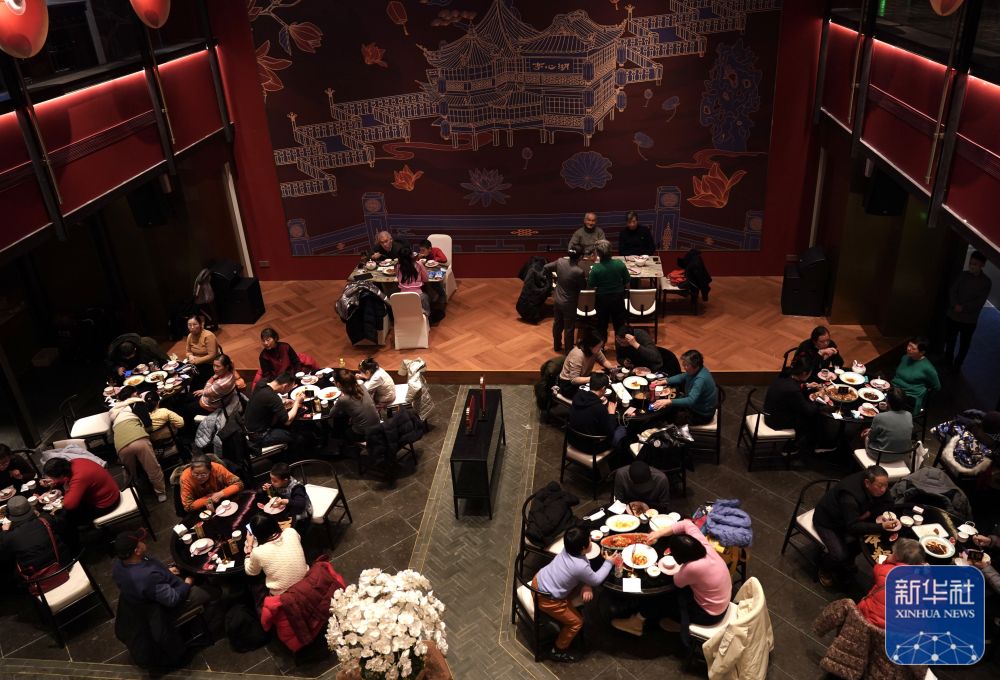 ↑1月26日,东说念主们在上海老饭馆(豫园店)内用餐。新华社记者 刘颖 摄