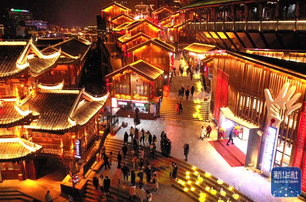 ↑1月25日,湖北省宣恩县痛快老路灯火光泽(无东说念主机像片)。新华社发(宋文 摄)