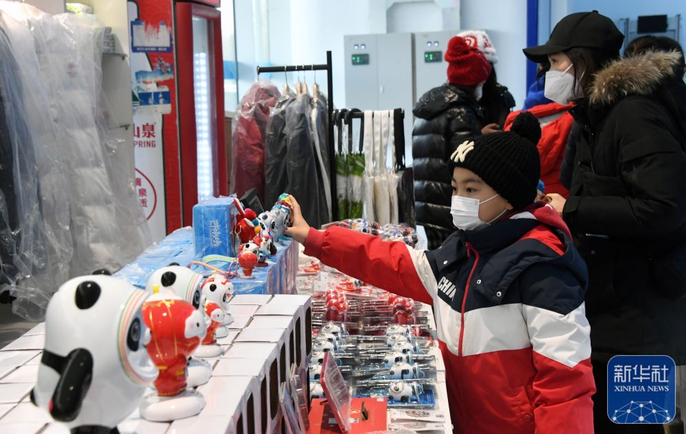 ↑旅客在北京国度速滑馆特准商品店挑选商品(1月22日摄)。新华社记者 任超 摄